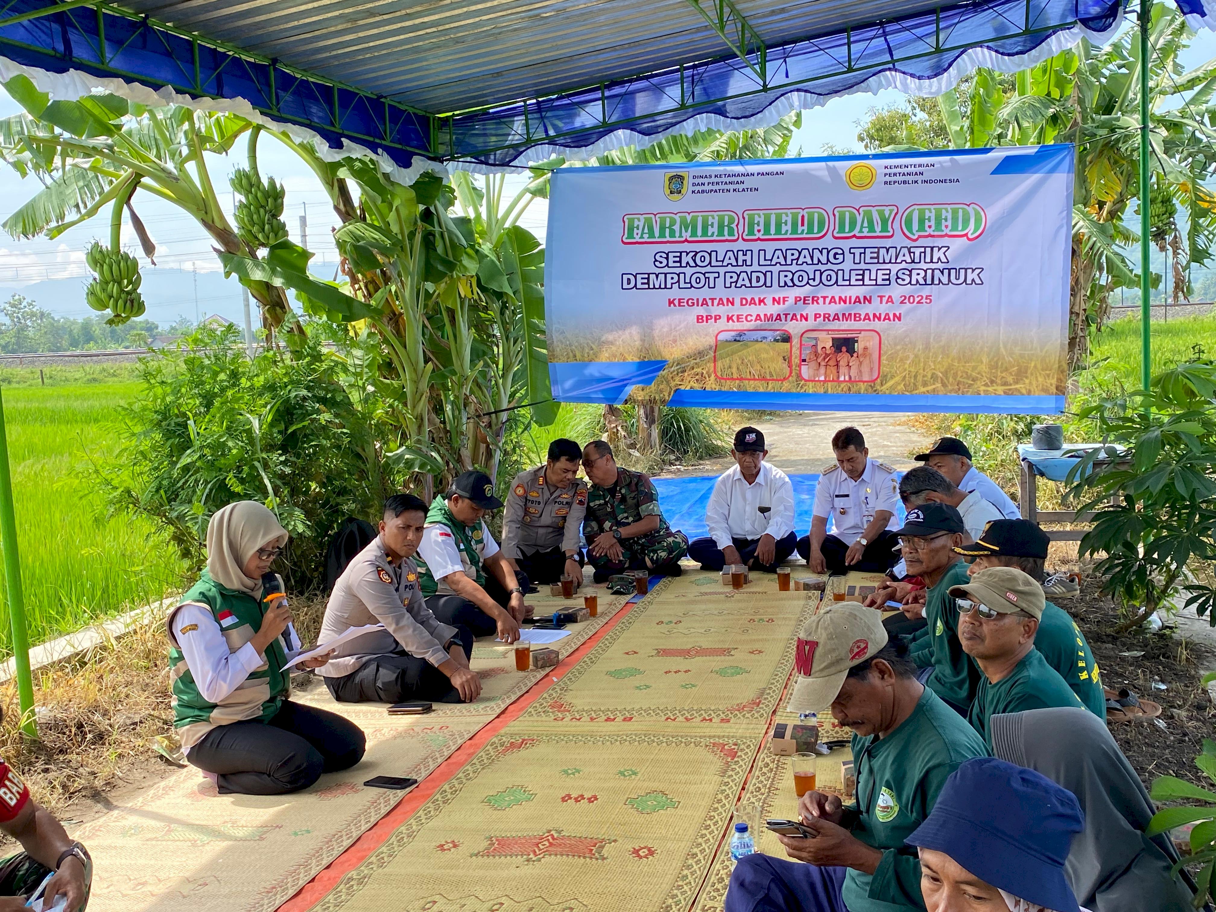 yang menyampaikan pentingnya kegiatan ini dalam meningkatkan produksi dan produktivitas padi di wilayah Kecamatan Prambanan. Selanjutnya, kegiatan dilanjutkan dengan penyampaian materi tentang budidaya padi Rojolele Srinuk oleh narasumber dari DKPP.Peserta kegiatan ini mendapatkan pengetahuan dan keterampilan tentang budidaya padi Rojolele Srinuk, termasuk tentang pemilihan benih, penanaman, pemeliharaan, dan panen. Selain itu, peserta juga mendapatkan pengetahuan tentang teknologi pertanian yang lebih modern dan efisienKegiatan Farmer Field Day (FFD) Sekolah Lapang.